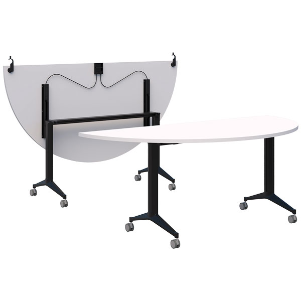 ACCENT BOOST SEMI-CIRCLE FLIP TABLE W1800 X D900 X H745MM BLACK BASE SNOW TOP