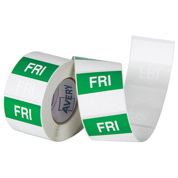 AVERY 937340 REMOVABLE DAY LABEL FRIDAY 40 X 40MM GREEN/WHITE BOX 500