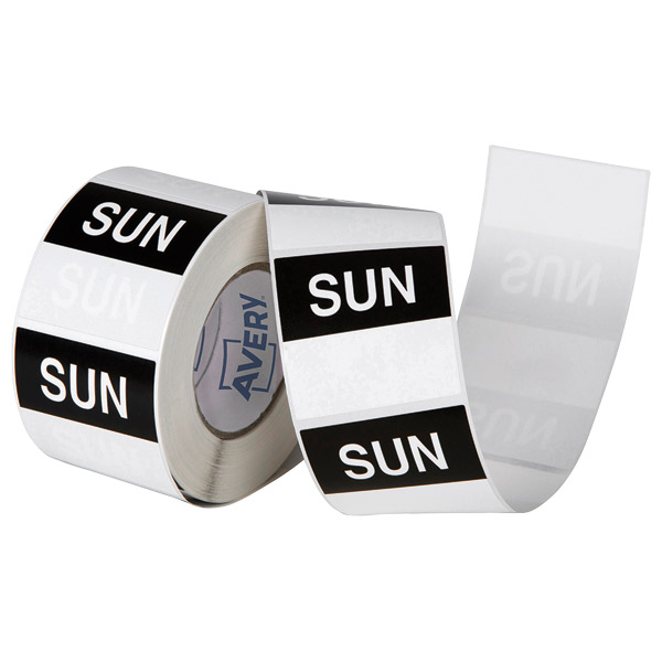 AVERY 937342 REMOVABLE DAY LABEL SUNDAY 40 X 40MM BLACK/WHITE BOX 500