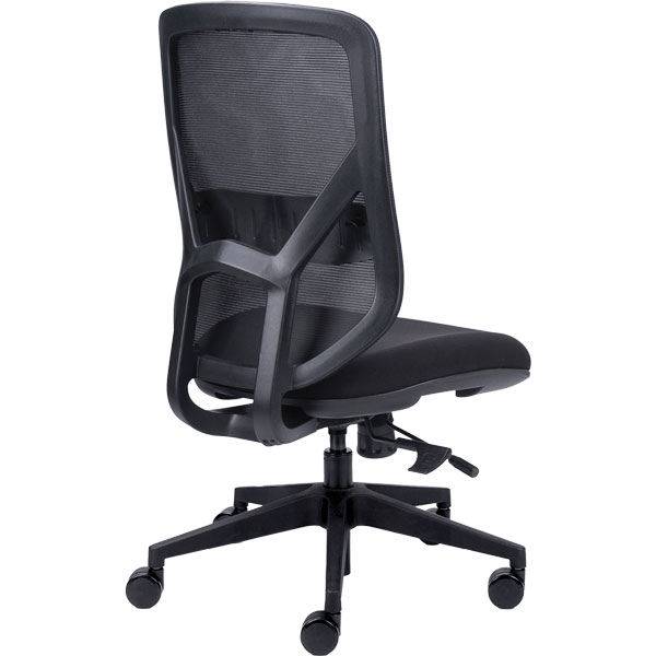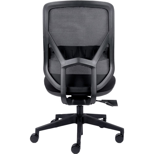 Comfortable mesh back is breathable and shaped with organic lines