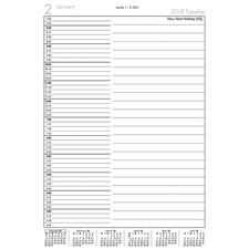 Refill. A5 portrait. Day per page, 1/4 hour appointments 7.30am-6.45pm. Ribbon marker. Sewn.