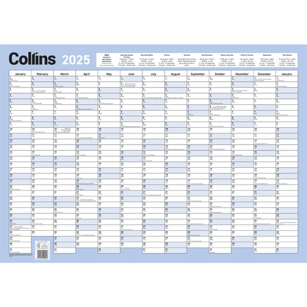 COLLINS WALL PLANNER ANY YEAR 695 X 495MM LAMINATED
