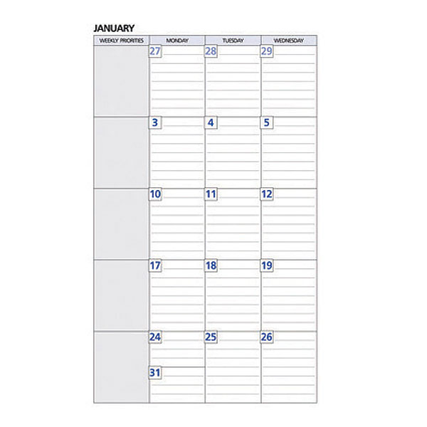Monthly Dated refill pages for the Debden Dayplanner Personal Edition.