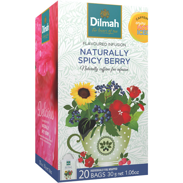 DILMAH TEA BAGS NATUALLY SPICY BERRY INFUSION INDIVIDUALLY FOIL ENVELOPED BOX 20