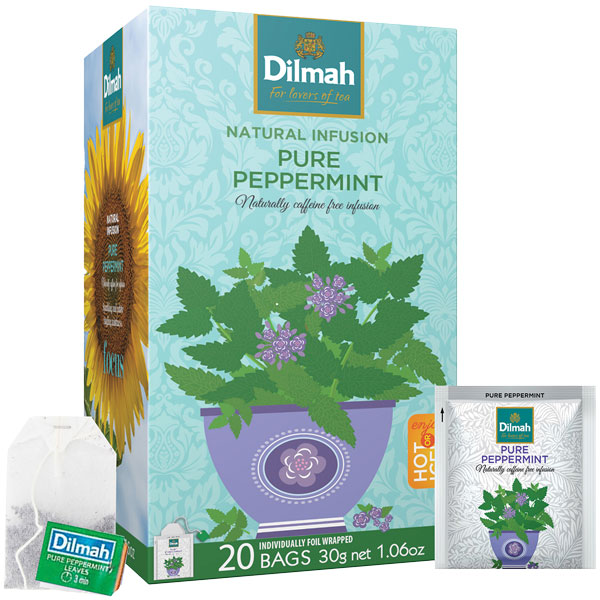 DILMAH TEA BAGS PEPPERMINT INFUSION INDIVIDUALLY FOIL ENVELOPED BOX 20