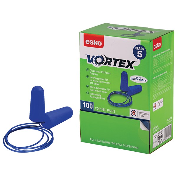 ESKO VORTEX METAL DETECTABLE EARPLUGS BLUE BOX 100