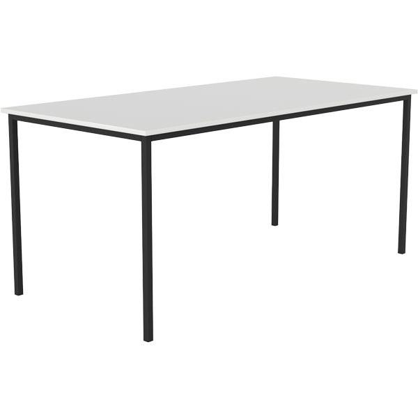KNIGHT CUBIT CANTEEN TABLE 1600 X 800MM WHITE TOP BLACK LEGS