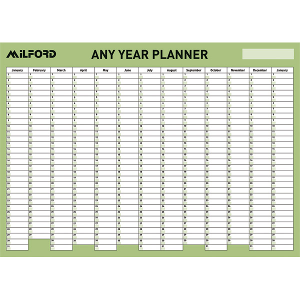 MILFORD WALL PLANNER ANY YEAR 695 X 995MM LAMINATED