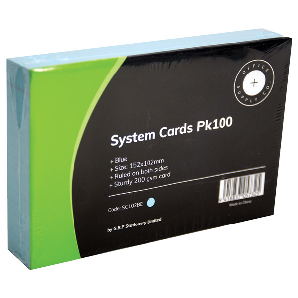 OFFICE SUPPLY CO SYSTEM CARDS 102 X 152MM BLUE PACK 100