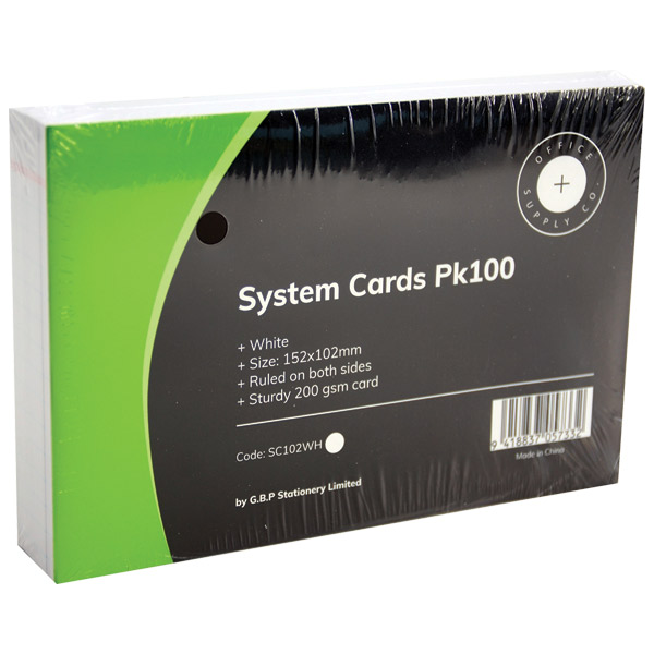 OFFICE SUPPLY CO SYSTEM CARDS 102 X 152MM WHITE PACK 100