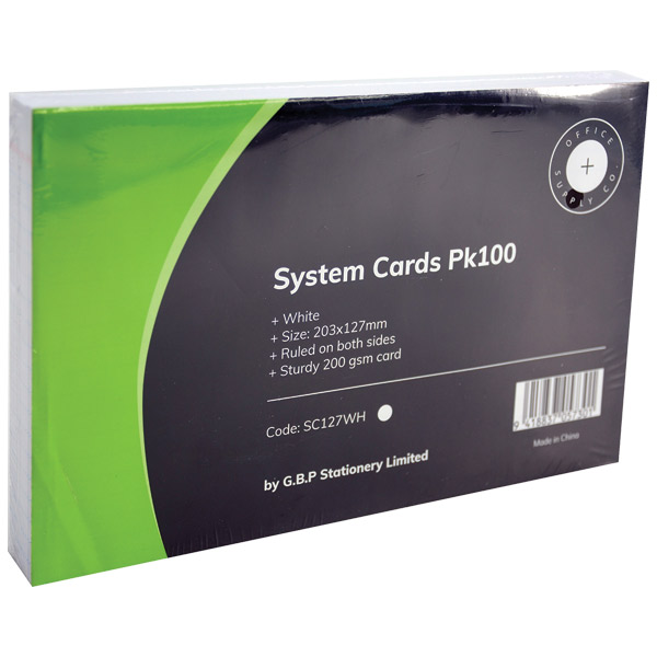 OFFICE SUPPLY CO SYSTEM CARDS 203 X 127MM WHITE PACK 100