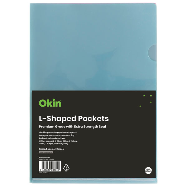 OKIN L-SHAPED POCKET A4 ASSORTED COLOURS PACK 12