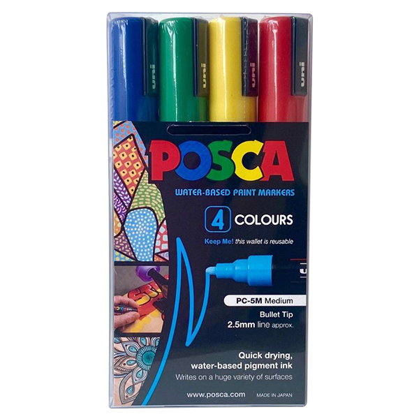POSCA PC-5M PAINT MARKER BULLET MEDIUM 2.5MM ASSORTED PACK 4