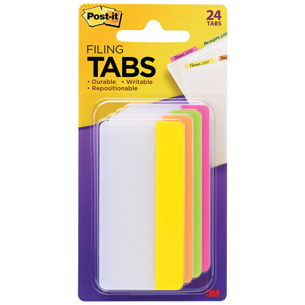 POST-IT 686-PLOY DURABLE FILING TABS SOLID 50 X 38MM BRIGHT ASSORTED PACK 24