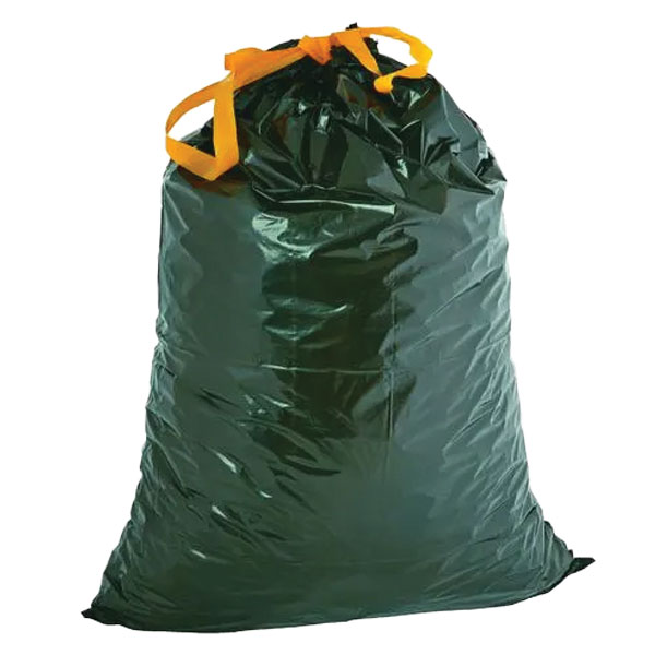 Plastic drawstring rubbish bags.