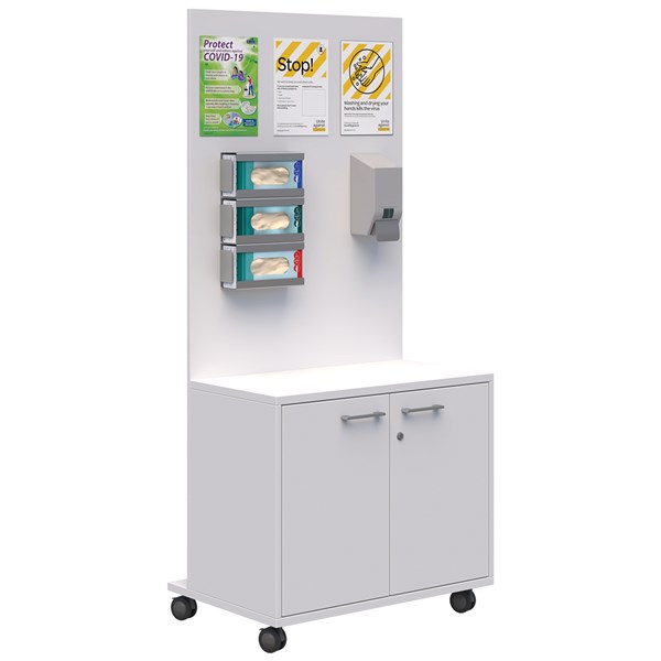 SANITIZATION STATION 1 LOCKING DOOR WITH BIN COMPARTMENT W800 X D550 X H1800MM SNOW
