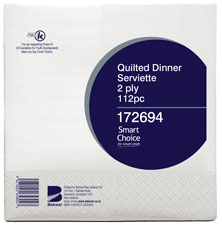 SERVIETTE SMART CHOICE DINNER QUILTED 8 FOLD WHITE PKT/112