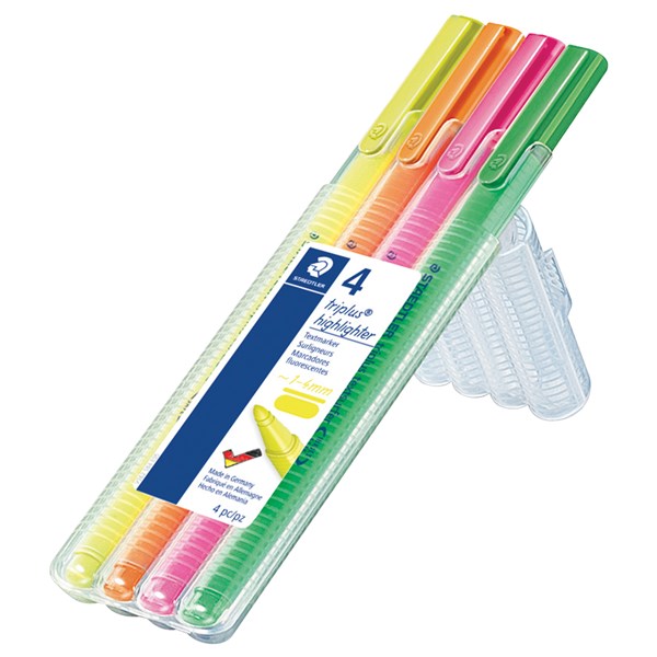 STAEDTLER TRIPLUS TEXTSURFER 362 HIGHLIGHTER CHISEL 4MM ASSORTED PACK 4