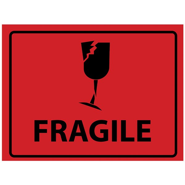 TAPESPEC PERFORATED LABEL FRAGILE 72 X100MM BLACK ON RED