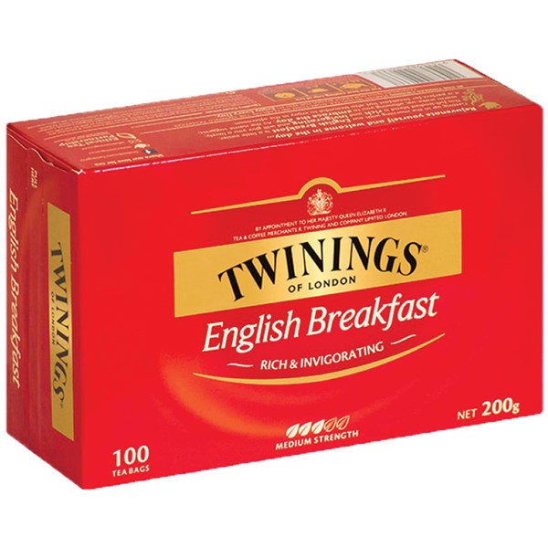 TWININGS TEA BAGS TAGLESS ENGLISH BREAKFAST BOX 100