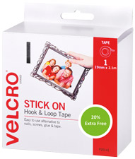 VELCRO HOOK AND LOOP STRIP DISPENSER INCLUDES 20 PERCENT EXTRA FREE W20MM X L2.1M WHITE