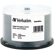 Verbatim DataLifePlus 52X White Inkjet, Hub Printable CD-R discs ideal for Full colour edge to edge printing, photo and text printing on CD/DVD inkjet printers