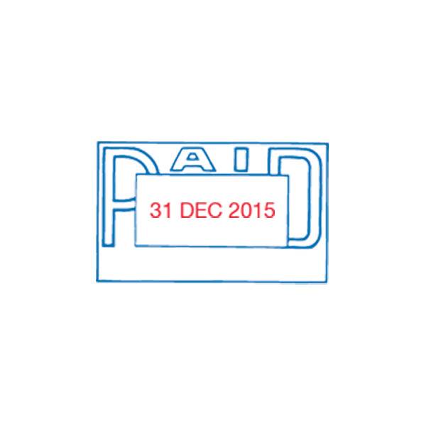 XSTAMPER CX-BN 2024 PRE-INKED MESSAGE STAMP PAID WITH ICON 42 X 13MM RED/ BLUE